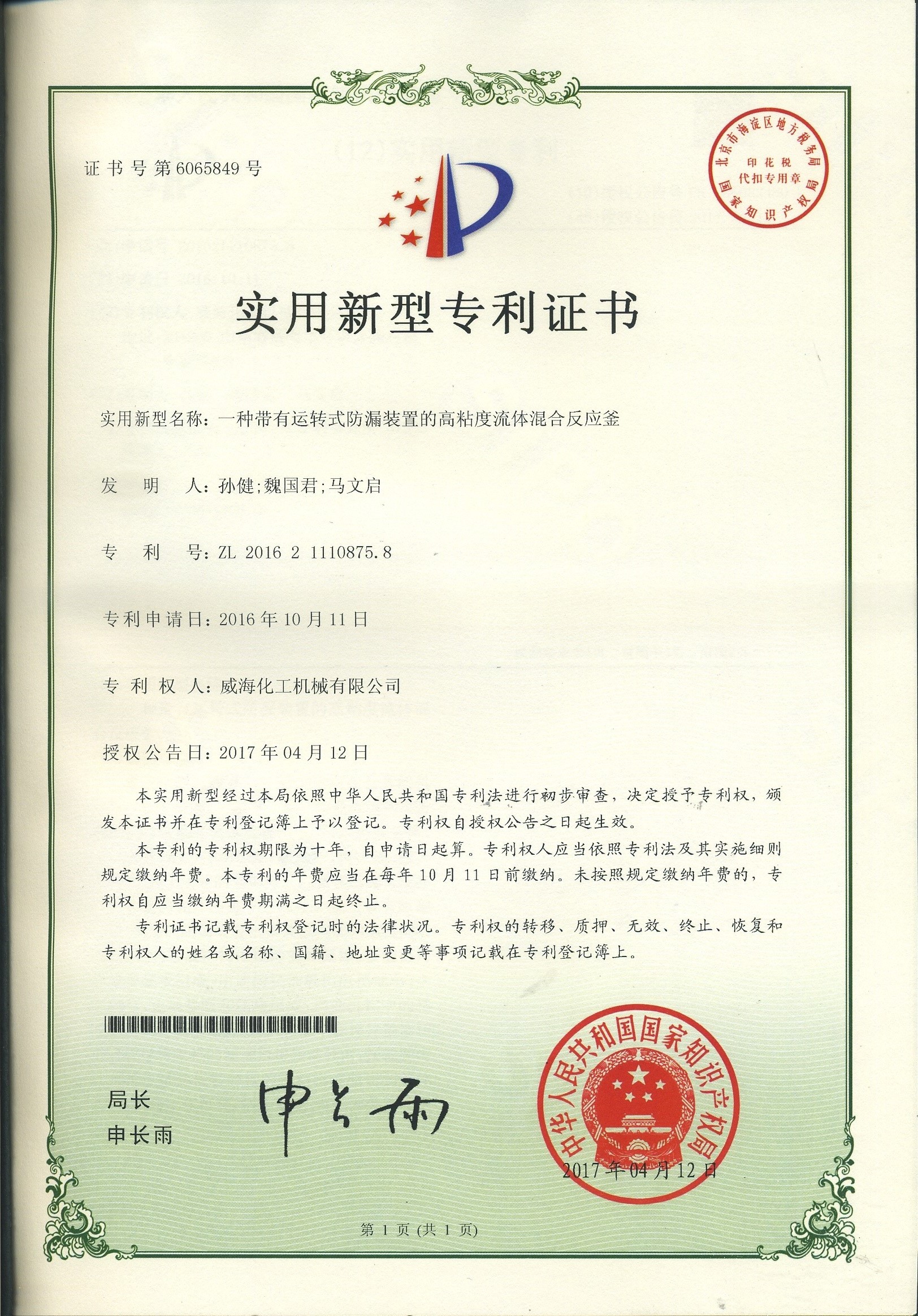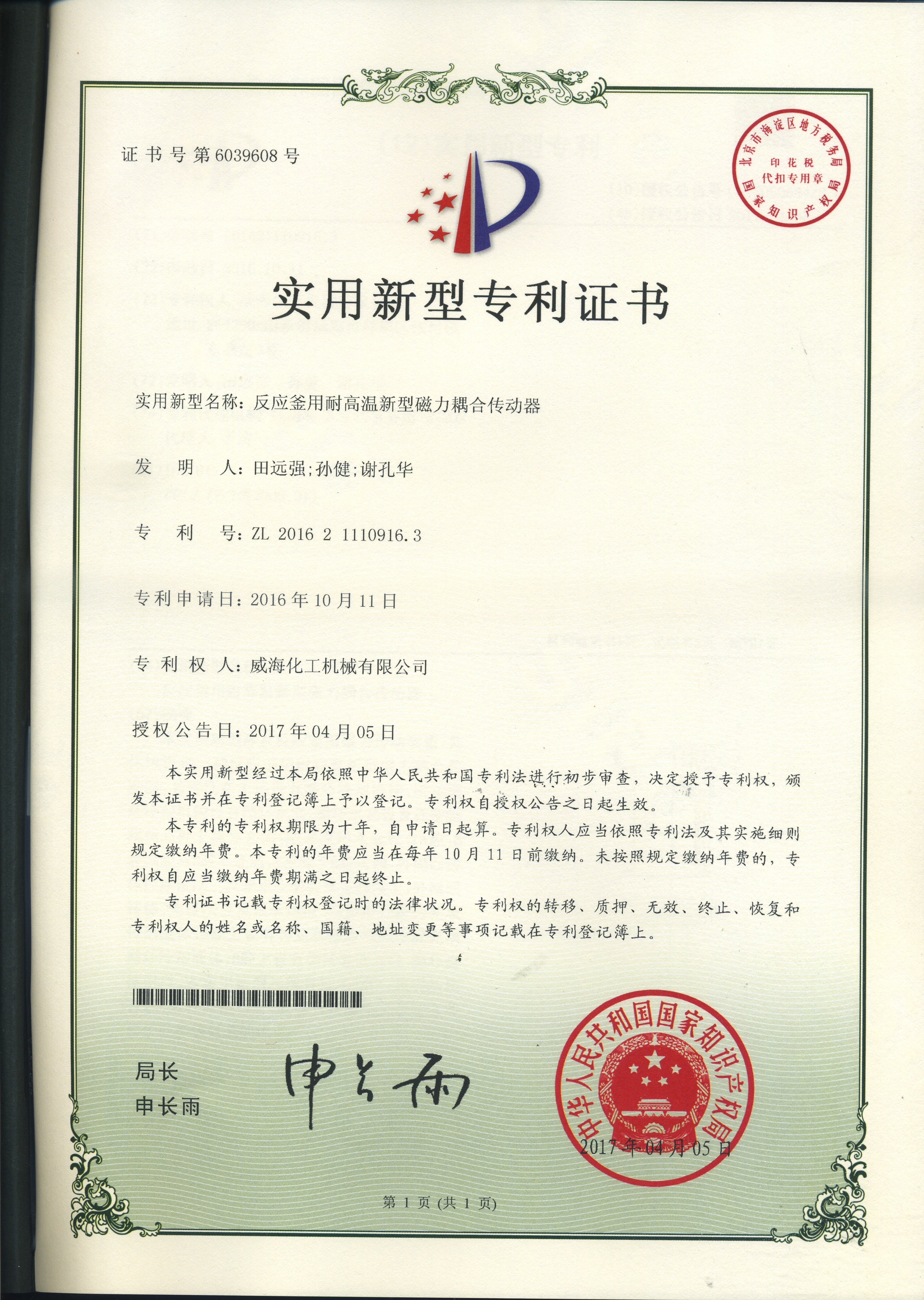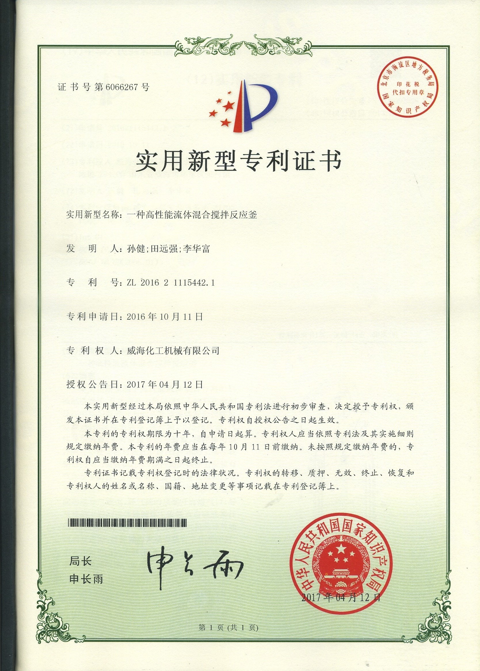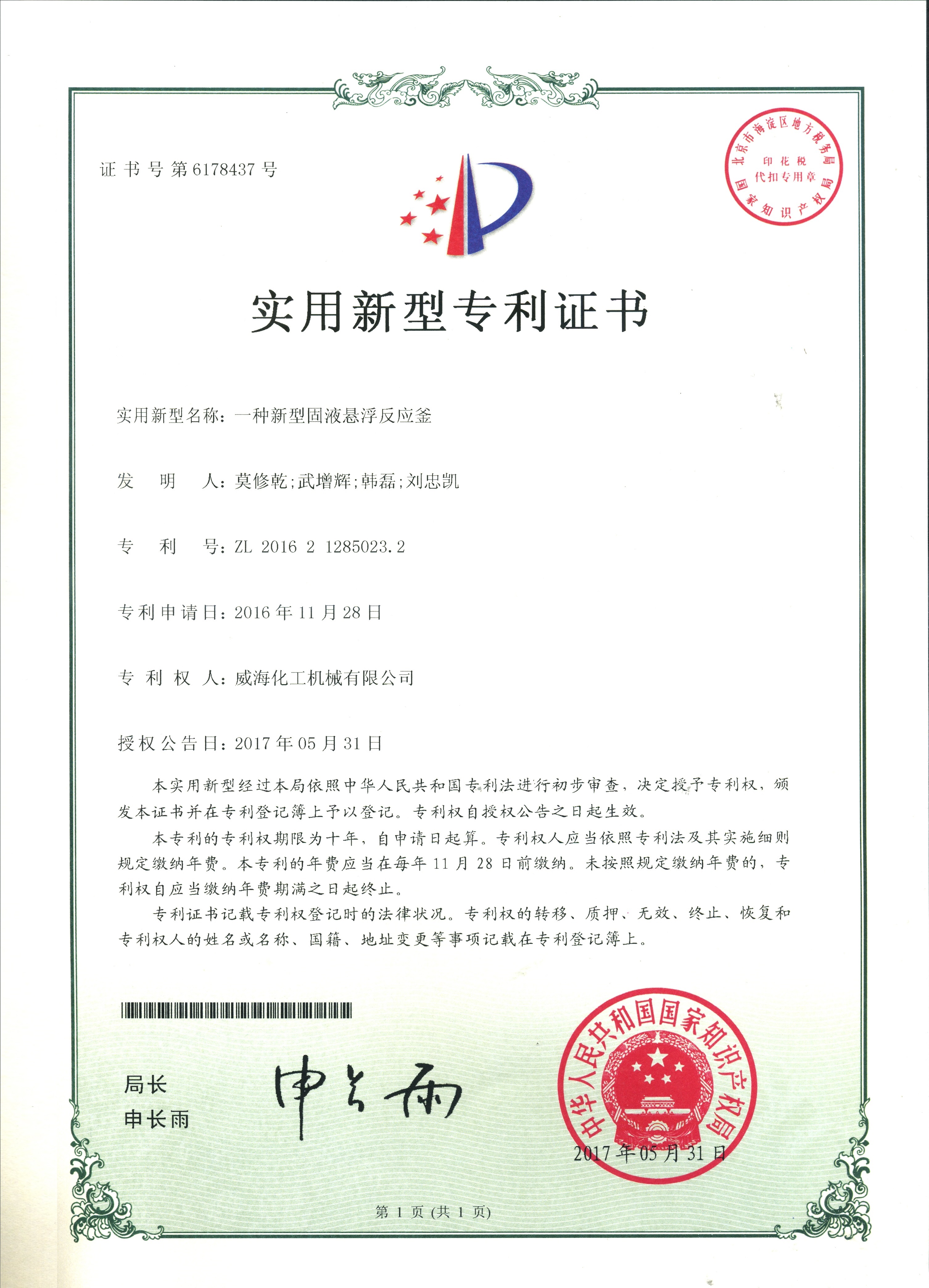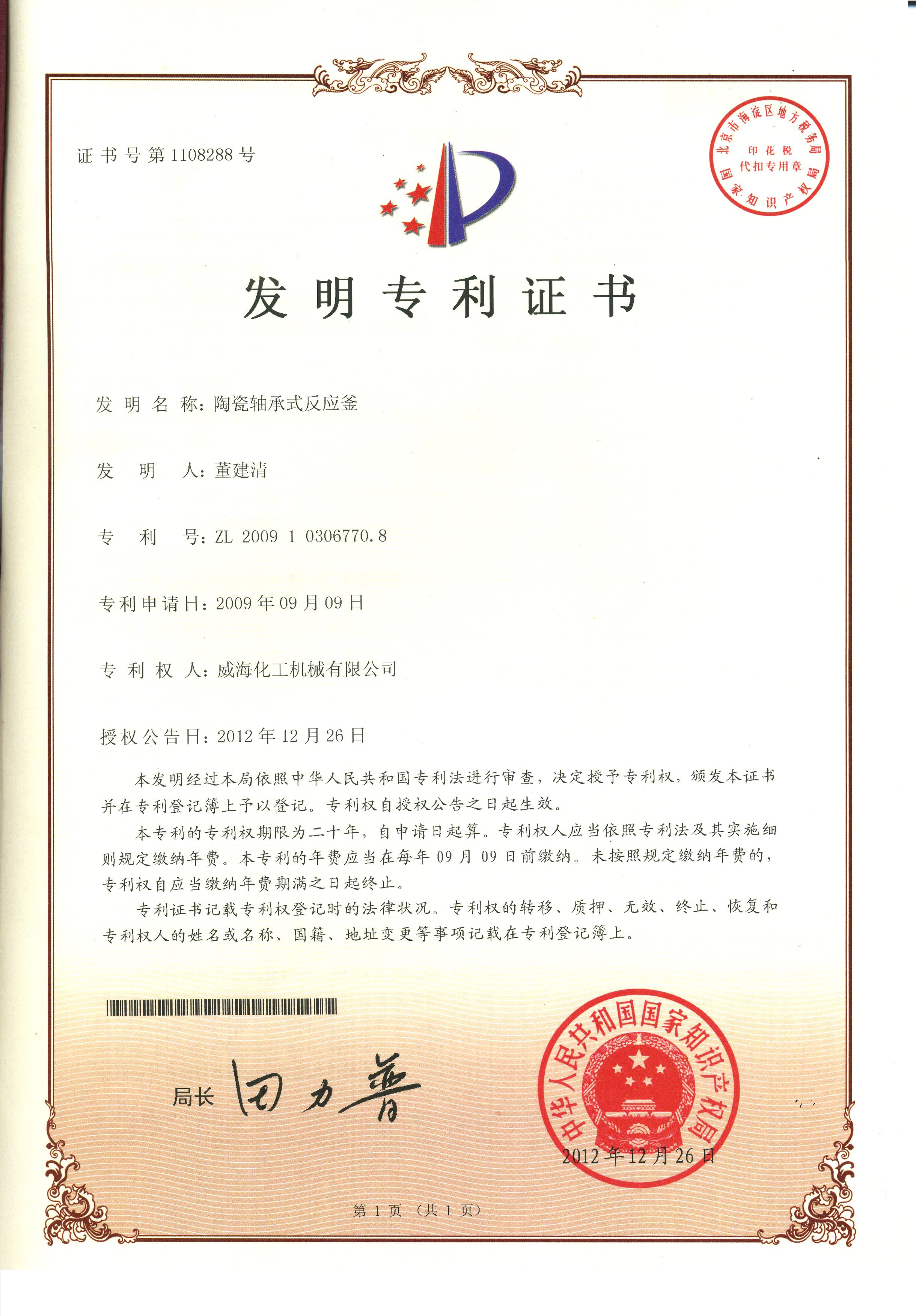 專利證書(shū)
