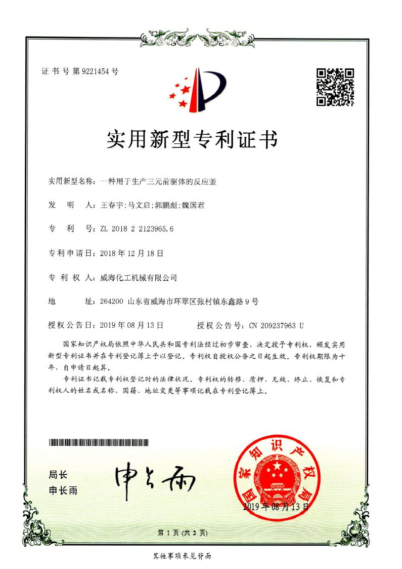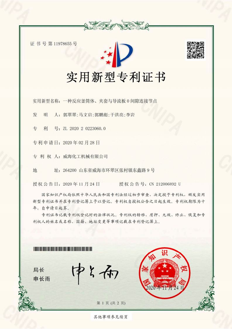 截止2024年擁有高壓反應(yīng)釜領(lǐng)域授權(quán)專利共95項(xiàng),其中發(fā)明專利19項(xiàng)、實(shí)用新型專利69項(xiàng)、外觀專利7項(xiàng),并持續(xù)在高壓反應(yīng)釜領(lǐng)域開(kāi)展關(guān)鍵核心技術(shù)攻關(guān)