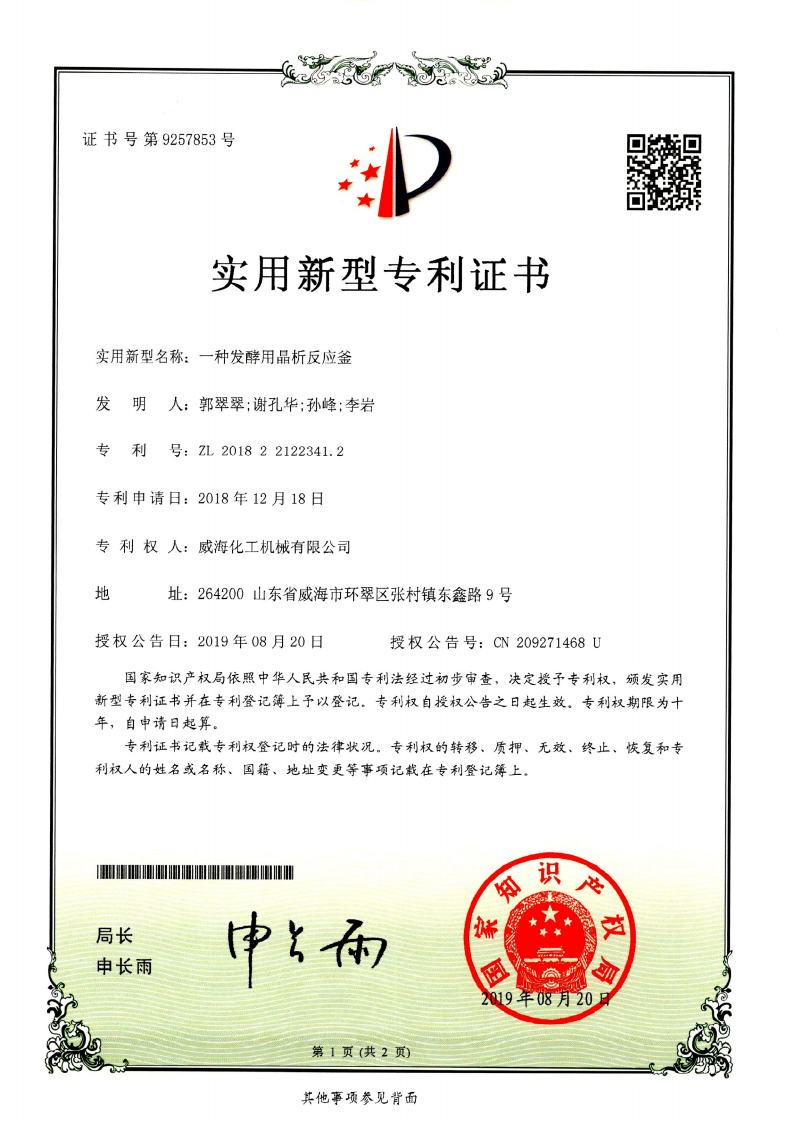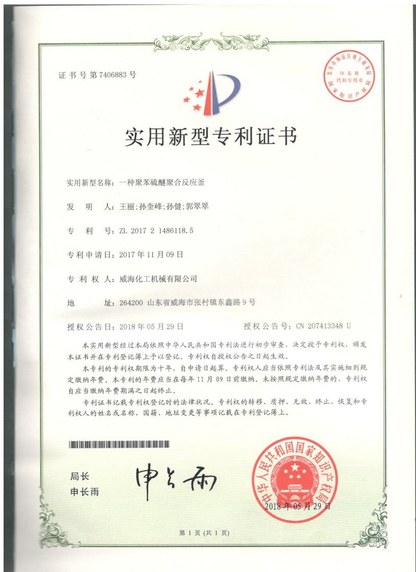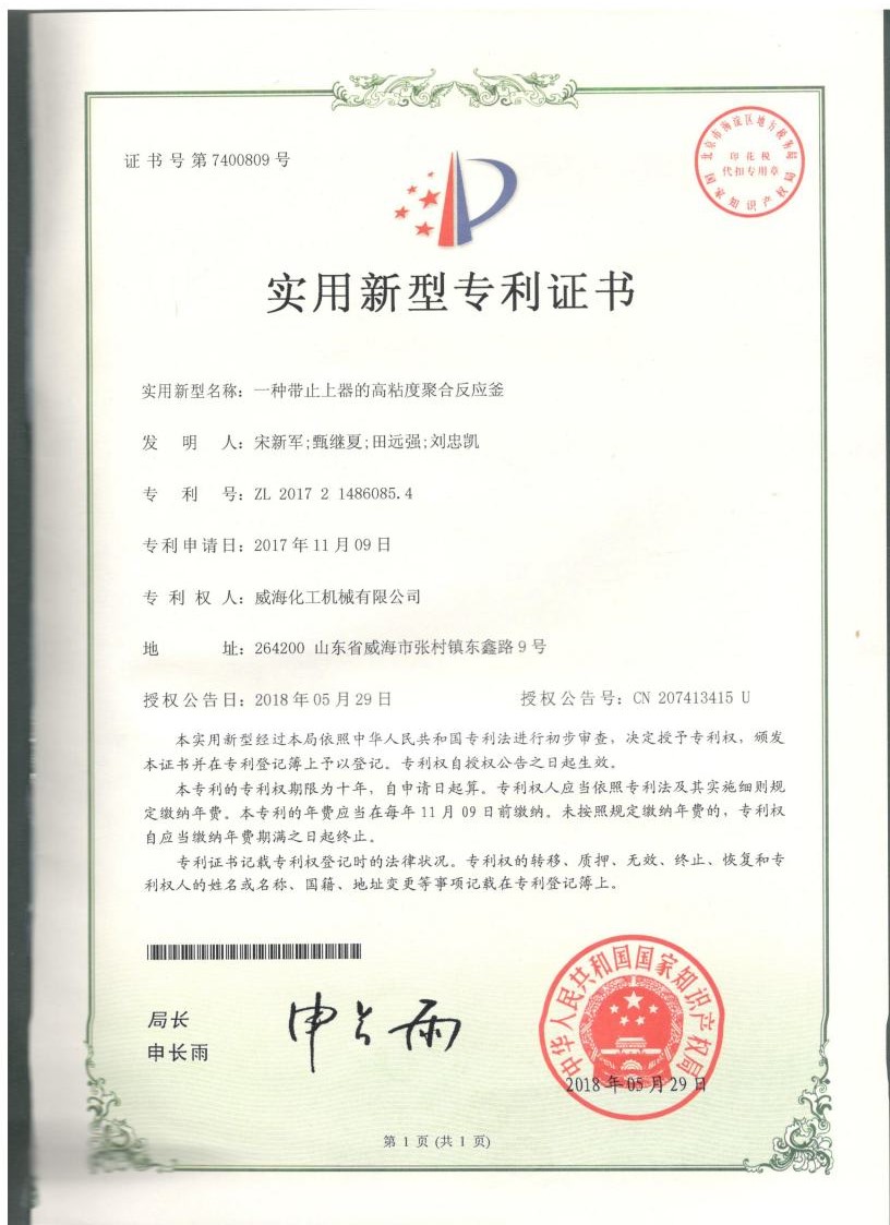 實(shí)用新型專利一種反應(yīng)釜用…