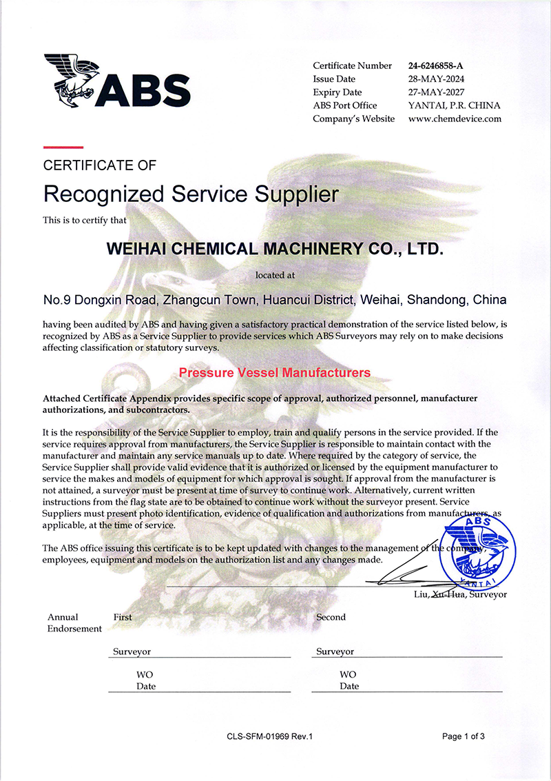 2024/09/15 查看詳情近日威?;C(jī)械有限公司(以下簡稱“威?;瘷C(jī)”)壓力容器產(chǎn)品成功獲得了美國船級社(ABS)頒發(fā)的權(quán)威認(rèn)證,是繼復(fù)合板產(chǎn)品ABS認(rèn)證后拿到第二張ABS證書,這標(biāo)志…